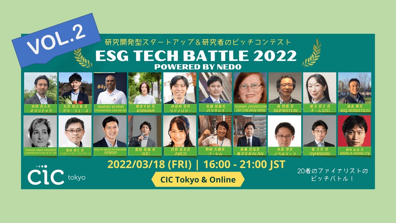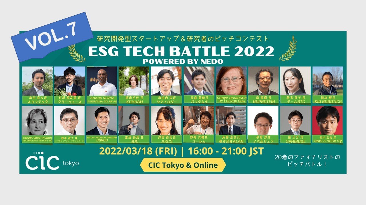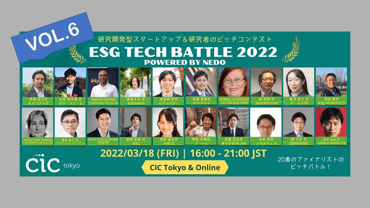 【Vol.6】ESG系の研究開発型スタートアップ&研究者、起業家が大集結するESG TECH BATTLE 2022!