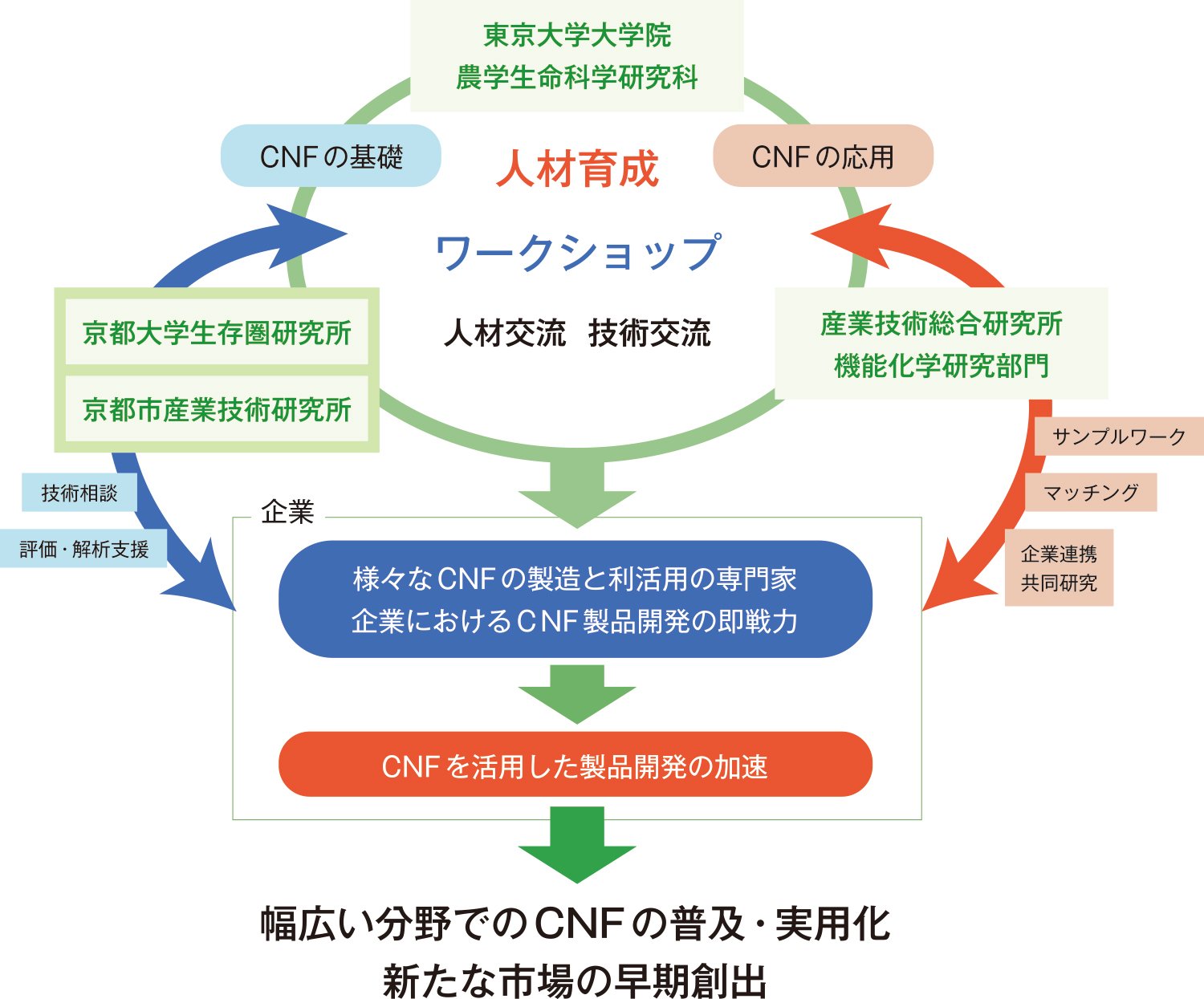 東京大学、京都大学、京都市産業技術研究所、産業技術総合研究所の4機関拠点で2020年度より開講し、講義と実習を毎年前期と後期の2回開催しています。本講座では、さまざまなCNFの前処理から樹脂複合化までの製造技術や成形加工技術、分析方法等の製品開発に必要となる知識と技術が習得できます。また、ワークショップではCNF製造等に携わる企業に講演いただくなど受講企業者間や講演企業との技術交流も行われています。
