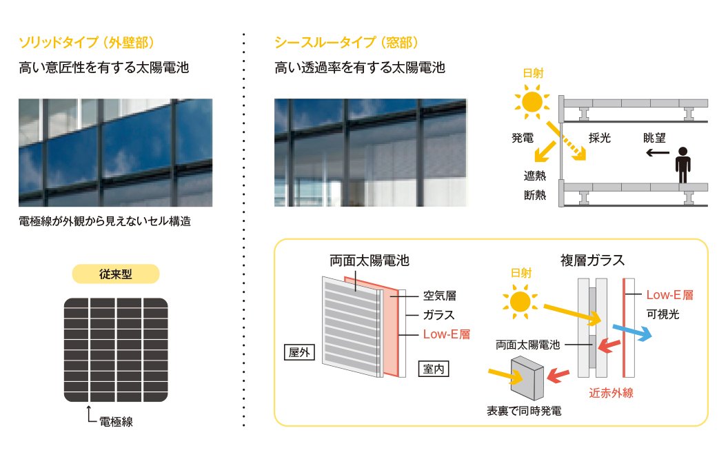 ソリッドタイプ(外壁部)とシースルータイプ(窓部)の特徴