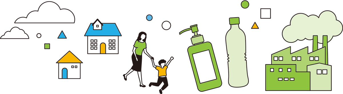 さらに、パッケージやラベル等を同一素材で作る包装容器の開発も同時に進めており、これらの技術を連携することで、全廃プラスチックの約30%のCR活用と、収率70%での石油化学原料化を目標としています。