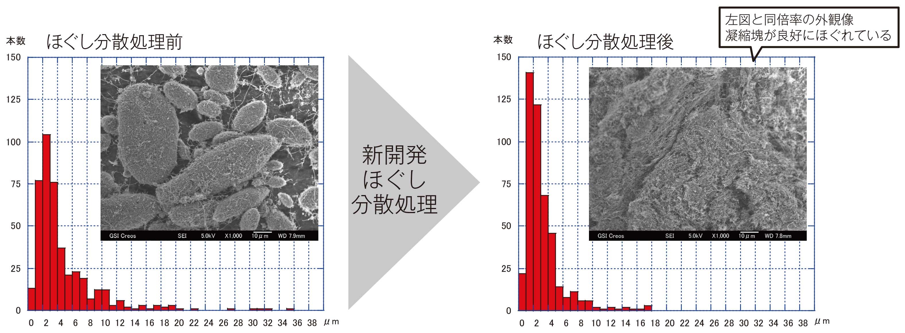 今後は、ほぐし分散技術を使用した新しい材料や製品の開発などを進めたいとのことです。
